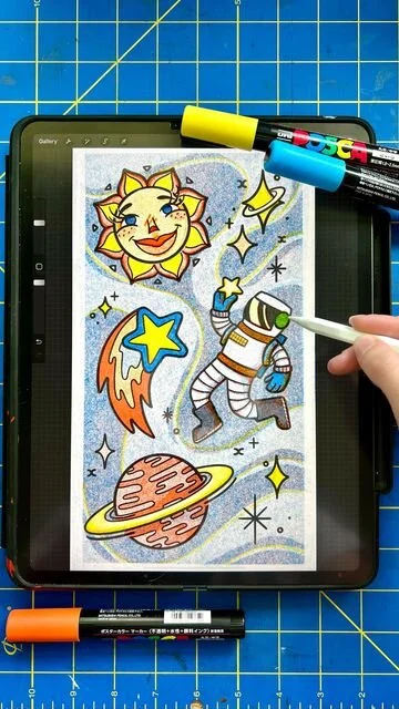 I often bounce between digital and analog sketching in the first phase of a project, but all refinement and final details in my work are solidified digitally. This is how I prep the designs for my paintings, embroidery, and murals as well!